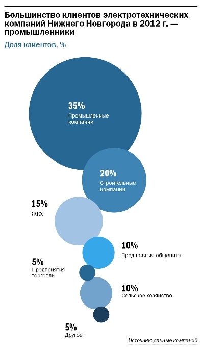 * Нижегородские поставщики электротоваров увеличивают объемы продаж. В среднем за 2012 г. он увеличился на 30%, что связано с улучшением ситуации на ключевых рынках области, таких как промышленность, строительство, и другие.